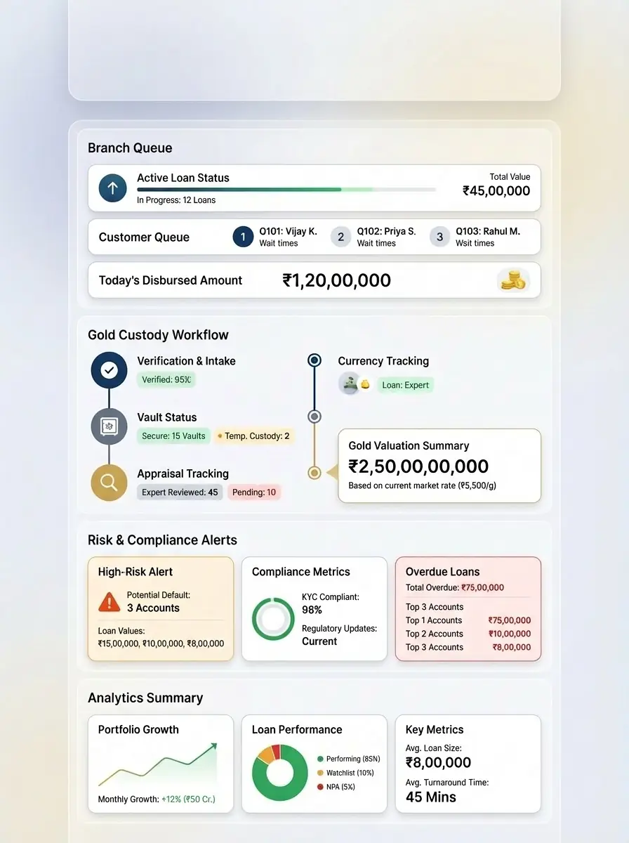 Bring control, visibility, and audit-readiness to your gold & silver loan operations.